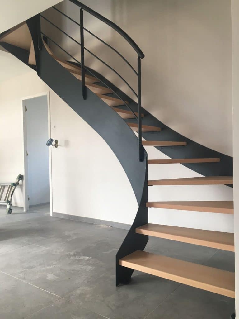 Escalier 2/4 tournant limon plat
